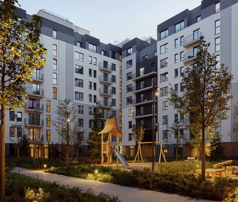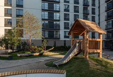 В домах Брусники прозрачные сквозные подъезды. Жители видят, что происходит внутри подъезда и снаружи во дворе. Вход находится на уровне земли. Это удобно велосипедистам, мамам с колясками и пожилым людям.